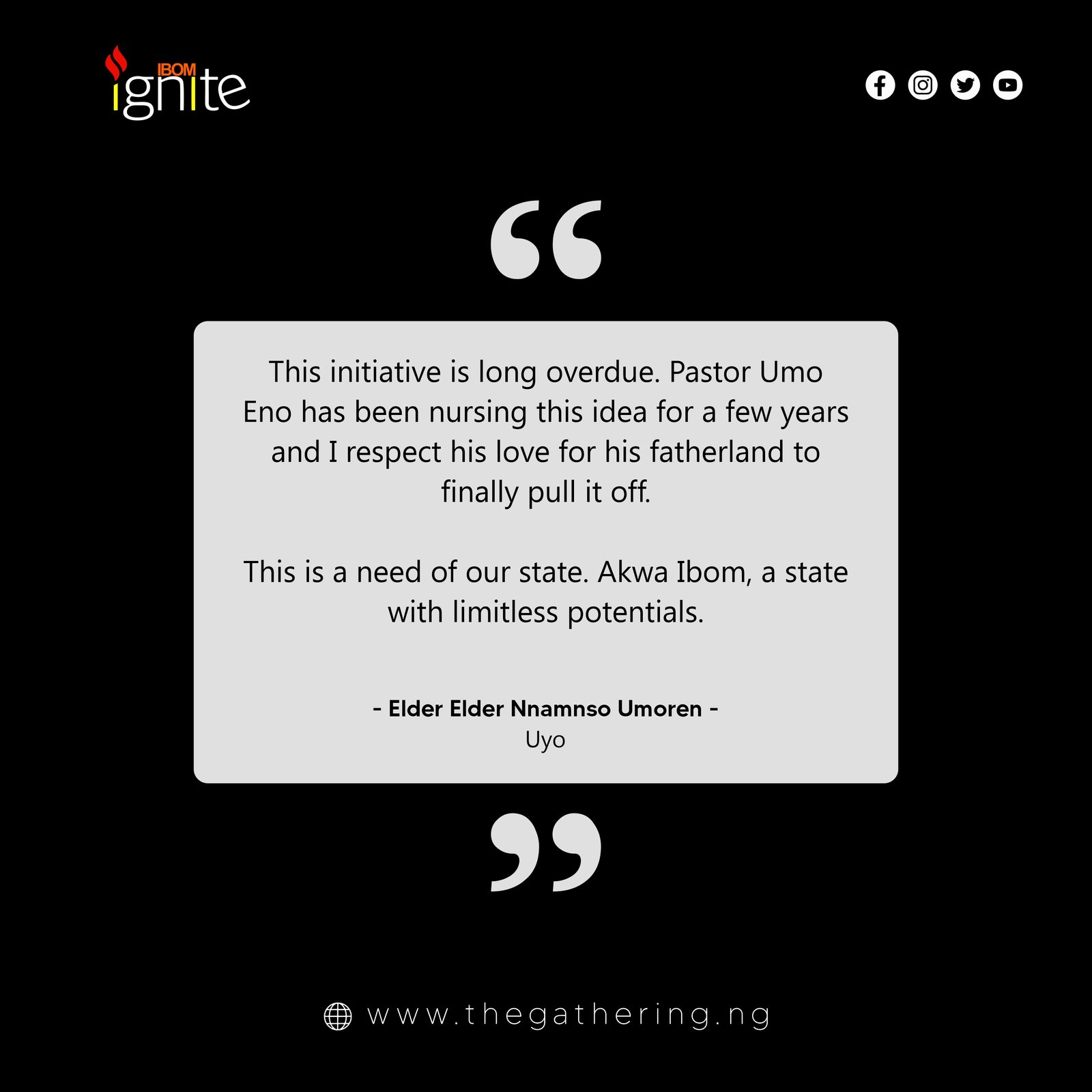 Pastor Umo Eno's vision revolves around furthering peace and prosperity by connecting the dots from our past, present to the future, developing our communities and providing sustainable jobs through industrialization and rapid development.